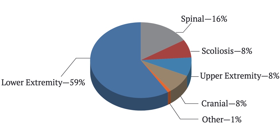 The Practice Analysis breaks down the practice areas even further. For example in orthotics, certified orthotists report they spend 59% of their time in the lower extremity practice area. Within that area their time is divided among specific device types. About 18% of their time is spent on AFOs, 8% on foot orthoses, 7% on shoes, 6% on knee orthoses and 4% on knee ankle foot orthoses.